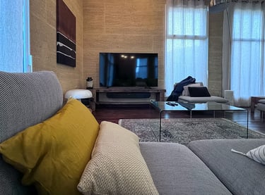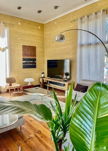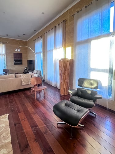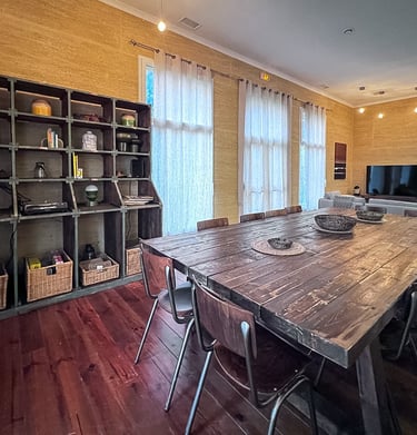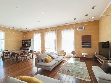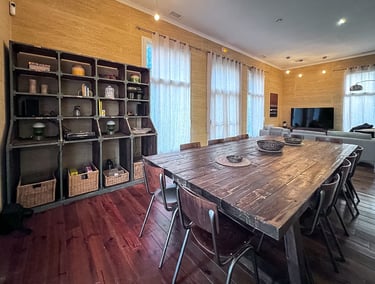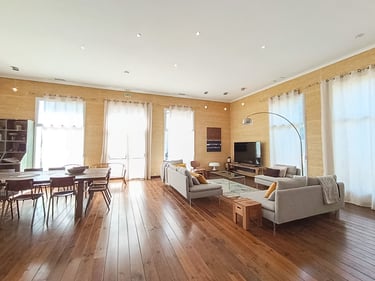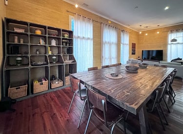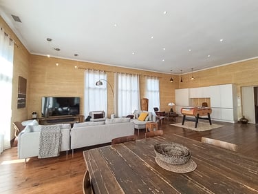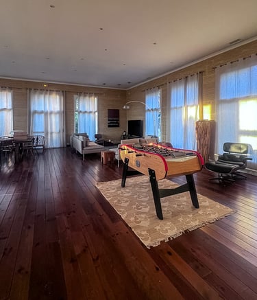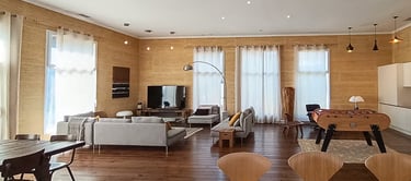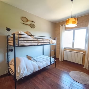Le salon invite à profiter pleinement de la maison, entre parties de baby-foot, musique sur platine vinyles, séances de home cinéma et instants plus calmes au coin lecture. Un espace confortable et vivant, pensé pour tous les rythmes du séjour.