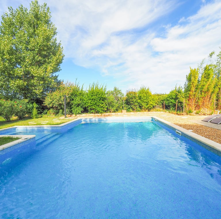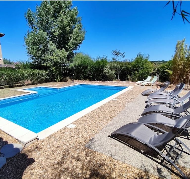 La piscine de 10m par 6m s’intègre naturellement au charme des extérieurs, entre pierre, lumière du Sud et douceur méditerranéenne. Terrasses, végétation et espaces de détente composent un cadre élégant et apaisant, idéal pour profiter pleinement de chaque instant, du lever du soleil aux longues soirées d’été.
